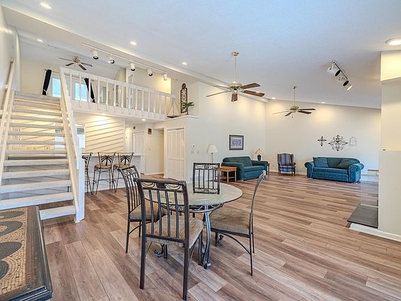 This charming 3br 2ba condo offers a perfect blend of comfort and convenience with stunning views of the spring-fed lake. The main level features a spacious, vaulted living with cozy gas fireplace and stylish LVP flooring. A convenient bar area complements the open layout, perfect for entertaining. The kitchen is efficiently designed for all your culinary needs, while the master suite provides a private haven. Upstairs you will find a guest bedroom, a loft-style bedroom, a shared bath and access onto a large walk-out balcony. The condo association handles all exterior and grounds/maintenance along with city water, insurance on the building and the community pool. Sold partially furnished.