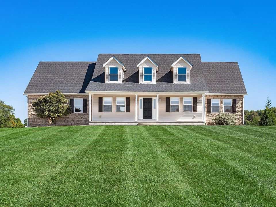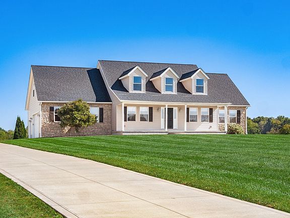 Pristine Cape Cod located on a 2.79 acre lot in desirable Mill Pond Estates. The spacious eat-in kitchen features stainless steel appliances, quartz counters, a tile backsplash and a pantry. Beautiful hardwood floors on the first floor. The first floor master bathroom has twin vanities, a soaking tub and a separate shower. Vaulted great room with a fireplace. The formal dining room includes built in cabinets. First floor laundry. Huge second floor bonus room is an ideal play/game room for the children. Relax on the full front porch. Large deck and patio. Storage shed. The full poured wall walk out basement is framed out, has a bathroom rough in, and is ready to finish. New refrigerator, dishwasher and induction cooktop. Newer dual tank water softener and water filtration system.