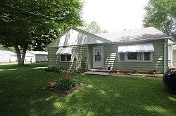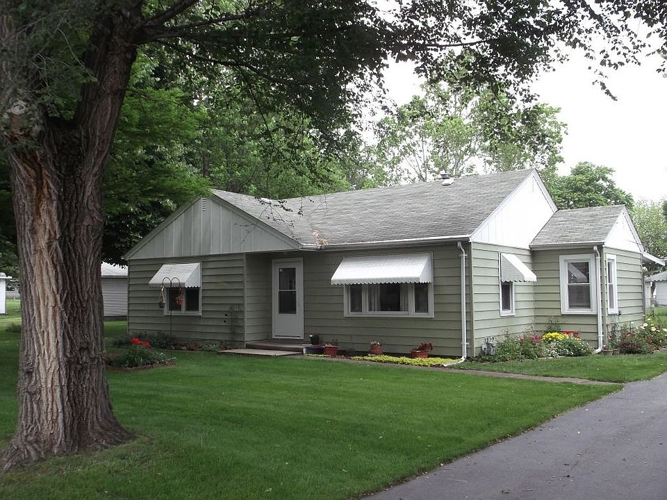 This little gem has loads of curb appeal and low maintenance living. Immaculately maintained with light-filled rooms, this home boasts steel siding, replacement windows, new carpet and vinyl as well as hardwood in bedrooms. Covered back porch allows you to enjoy summer evenings on level lot with mature trees and perennial plantings. 2.5 car garage as well as lawn shed for yours tools and toys. 1300+ sq. feet so this home has a very spacious feel. Ideal for buyers seeking rural development property.