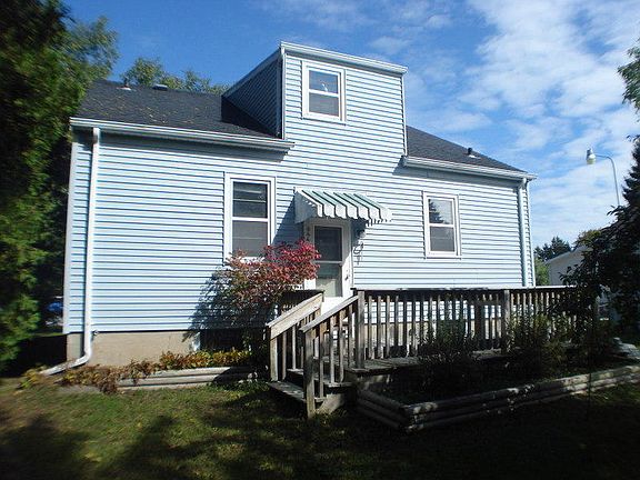Conveniently located 4 bedroom Village Cape Cod Design home featuring 2 main and 2 upper level bedrooms, full bath, large kitchen, ample dining area, spacious living room, main level laundry area, full basement. Natural Gas Forced Air furnace, Central air, wood deck front and back, 1.5 car detached garage, very large deep landscaped yard, near golf course, all village amenities, lots of space to grow!