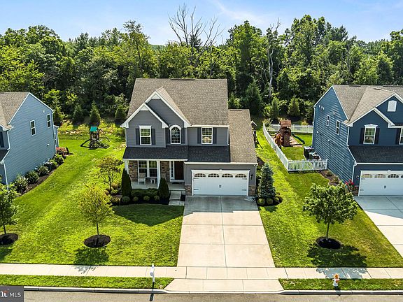 Welcome to 116 E Crossing Drive! Nestled in the beautiful Meadows at Greenwich Crossings neighborhood. This well maintained and 6 years young home (built in 2018) features an impressive eat-in kitchen, showcasing granite counter tops, premium cabinets, a center island with kitchen sink, bar stool seating, stainless-steel appliances, recessed lighting and large pantry closet. Inside layout is elegant and functional with foyer and living room in the front and you walk back to a ½ bathroom and closet to the left into a large open family room with gas fireplace, open kitchen and dining room with hardwood flooring with with plenty of windows for views of the private back yard and paver patio. The 2nd floor features wide open hallway with large upper foyer window, four bedrooms and two full bathrooms with plenty of closet space. The primary bedroom suite spans the entire width of the home with large walk-in closet, oversized tiled walk-in shower, linen closet, ceiling fan and views of the private wooded backyard. The finished basement with rough plumbing for a bathroom adds another 550+ square feet of living space along with a large unfinished area for ample storage along with wall insulation and sump pumps. There is beautiful and mature landscaping around the entire home with stone front façade with covered porch, backyard paver patio, private lot with woods behind, irrigation system for the entire yard, swing set and jungle gym, extra wide paved driveway for parking 4 cars and 2 car garage. Home includes a wired alarm system, wired sound system, tankless water heater, high efficiency furnace, insulated walls in basement, garage door opener with keypad and separate laundry room on first floor. There is plenty of room for a growing family with 2,169 SF of living space on both levels, 550+ SF in finished basement, another 500 SF in unfinished basement and large 2 car garage. Only a 20-minute drive to center city Philadelphia, this home is so conveniently located to area schools, shopping, many restaurants, and Rt. 55, NJ Turnpike and Rt. 295 North & South provide easy access to Philadelphia, Delaware or Jersey Shore.