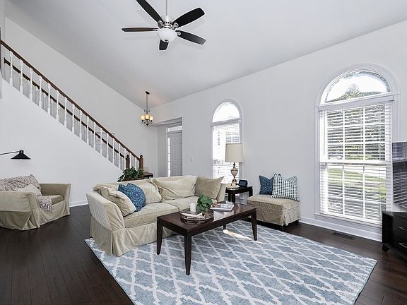 Showings begin Saturday 9/17 at 10 am! Incredible location! Convenient to ALL things Cary and beyond. This lovely home is nestled on a flat cul-de-sac lot in popular neighborhood with Pool, Tennis, Clubhouse, ponds, trails, and is adjacent to park, Greenway, restaurants, grocery store, ice cream, etc. Inside you're welcomed into a freshly painted great room with soaring ceiling, bamboo flooring, & fireplace. Enjoy cooking and entertaining in the kitchen with formal dining room, breakfast area, deck, and patio. The owner's suite is on the first floor and features a zero-entry oversized shower and a jetted tub. The two upstairs bedrooms are separated by a loft/flex space, bathroom, and a large walk-in attic storage space. Easy access to US 1/64 and I40. Updates include Exterior painted 2020, seamless gutters 2021,HVAC with whole house air filter 2018, bamboo flooring and carpet 2016