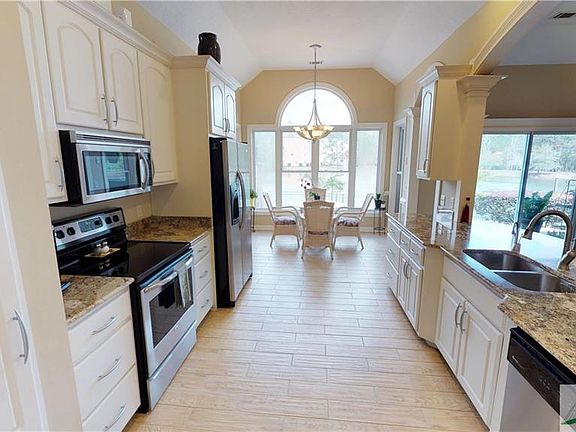 Welcome home to 116 Egret Pt!This show stopping all brick home is thoughtfully positioned overlooking a serene lagoon in the center of one of Savannah's most maintained estate communities. From the moment you walk in you are peacefully welcomed! Stunning, inviting kitchen that compliments the living room filled with gorgeous millwork, new flooring & paint throughout, including 4 sliding glass doors that overlook a prestine salt water pool & perfectly manicured landscape. The owner's suite has double tray ceilings with mood lighting & french doors leading into the master bath that includes a large walk in closet, spa tub & separate shower. Entertain family & friends upstairs in the bonus room with full bathroom for game & movie nights. Enjoy your evenings eating dinner on your back porch while listening to the fountain flowing & enjoying gorgeous sunsets. Live in luxury in this home in Southbridge & enjoy The Grand Lake Lodge and Spa, tennis, & golf. A lifestyle you don't want to miss!