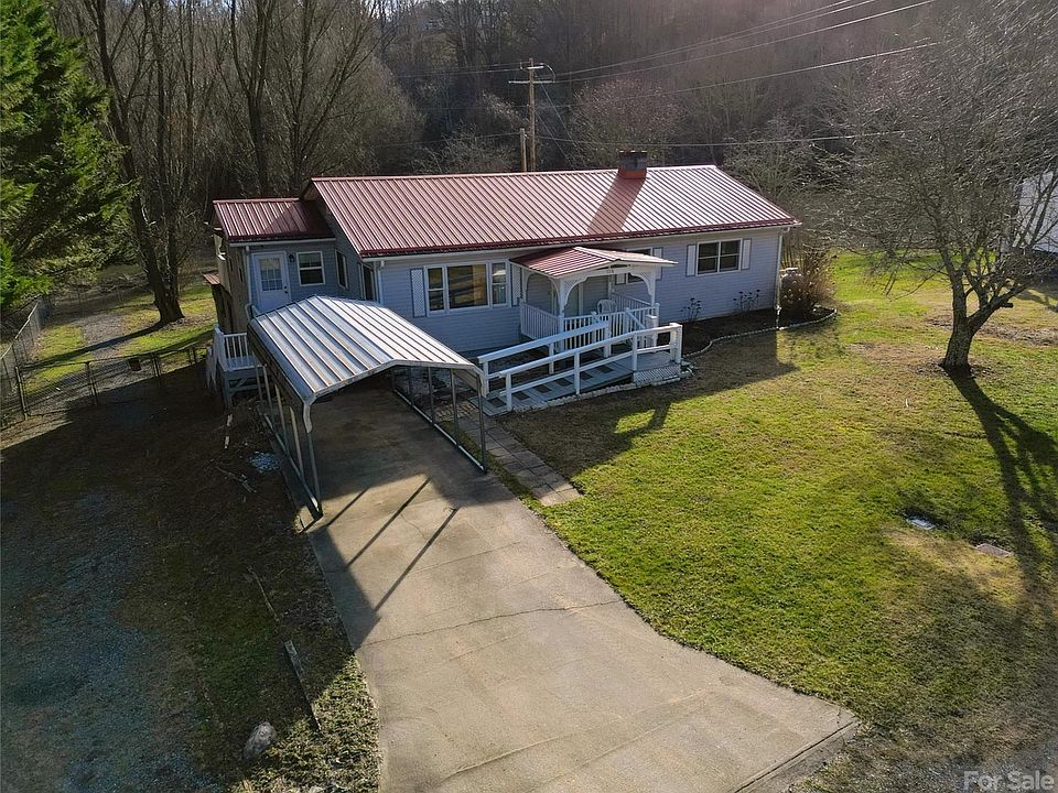 Big Price Reduction! Almost an acre of usable land! Nestled on a private road, this modest 2-bedroom, 1-bath home is a sanctuary of simplicity and natural beauty. The unfinished/finished heated basement has a a lot of possibilities. It includes a full kitchenette, half bath and an additional living space(not included in the HLA). Everyone wants a covered workshop, well this one has it! The property spans almost an acre, providing ample space for both relaxation and outdoor activities, all while offering stunning year-round N/NW views of the mountains. The private road ensures minimal traffic, enhancing the peaceful ambiance. As you explore the back of the property, you discover the soothing melody of a gentle creek. Book a tour today!