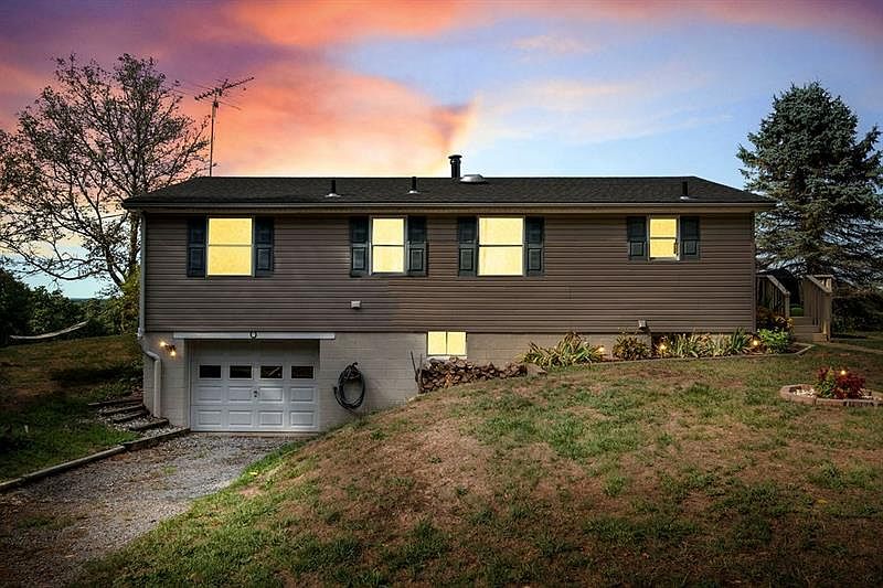 AWESOME LOCATION! 1+ acres nestled at the end of a private lane, you will feel like you are on top of the world. Stunning views of the surrounding rolling hills are just the beginning of this home's amenities. The home features 3 bed, 1 full bath, finished basement w/woodburner, integral garage w/ keypad, new 16x24 deck & lots of updates. Laminate flooring throughout kitchen, dining, hall & bath. New carpet in living room. Finished basement (2016) has beautiful ceramic tile floor for easy upkeep & custom wooden stairs leading up to main floor. Solid wood 6 panel doors & solid wood trim throughout. New water heater 8/20 & new W&D. Home is heated/cooled w/ 3 new mini splits(2019) & also woodburner in basement. Electric baseboard heat is installed as well. Newer roof 2013. Several fruit trees on the property as well as mature blueberries,raspberries,hops, & fenced garden. Chicken coop and shed also included. Just minutes from Cranberry & rt 79 but feels like you're in the country!