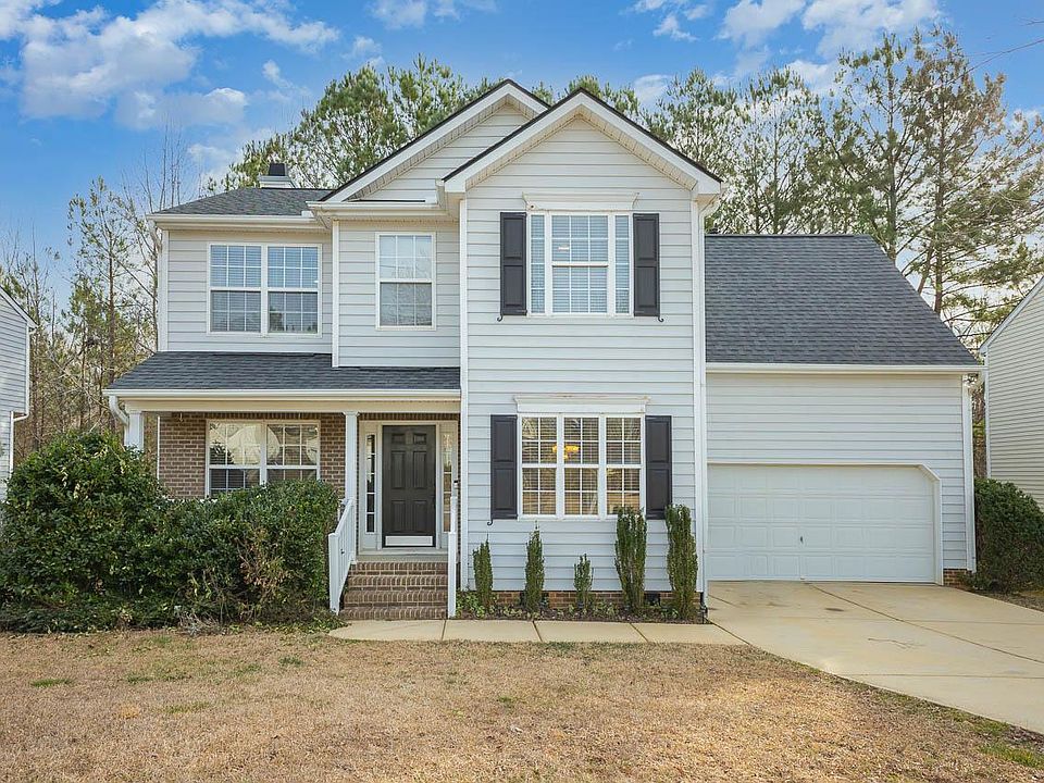 Beautiful, spacious home with a peaceful backyard view of protected woodlands. Great location with an easy drive to Raleigh, Cary and Durham - get on 540 within a few minutes. Shopping and restaurants are less than 10 minutes away. Enjoy the sun at the neighborhood pool. A serene greenway within the protected woodlands is within walking distance. Large spare bedroom is set up as a movie room with projector. Owner is responsible for HOA. Renter is responsible for water, gas and electric. No smoking. Pets allowed. Minimum lease duration: one year. Maintenance: renter responsible for landscaping
