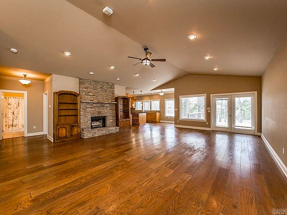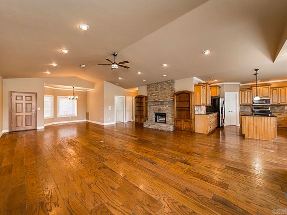 Welcome to your dream home on Mountain Ranch Golf Course! Nestled in a picturesque setting, this custom-built residence by a renowned local builder is a true gem awaiting its new owner. Prepare to be captivated by the breathtaking views of Fairway 2, offering a serene backdrop of water that will surely leave you in awe. Step onto the expansive back deck, recently renovated to perfection & soak in the tranquility of your surroundings. Whether you're enjoying morning coffee or hosting gatherings with loved ones, this outdoor oasis is sure to impress. Inside, the allure continues with a beautifully appointed kitchen featuring custom cabinets, elegant granite countertops & SS appliances. The vaulted ceiling in the living room, adorned with wood flooring & a cozy fireplace, creates a warm & inviting atmosphere perfect for relaxation or entertaining. With a spacious garage & additional golf cart garage below, storage will never be an issue. The split floor plan offers privacy & convenience, making this home ideal for families or those seeking a peaceful retreat. Wrapped in a timeless brick exterior, this residence exudes charm & sophistication.