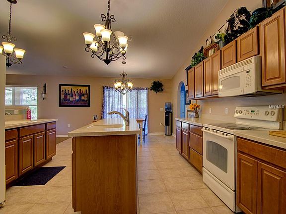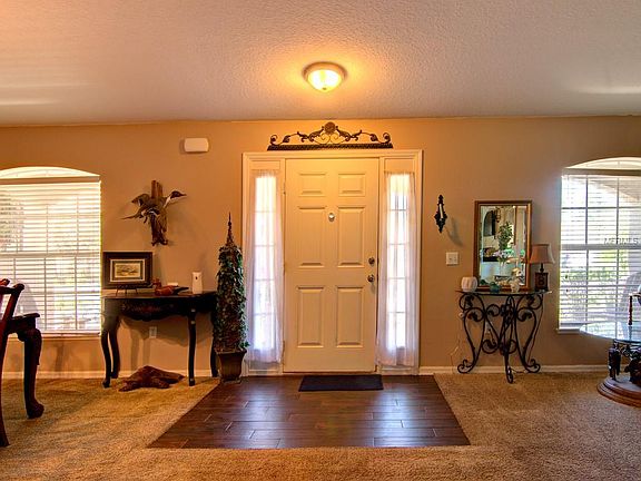 Your perfect home has arrived! This beautiful 4 bedroom 2 bath home in the Trails Estates has an amazing covered front porch that will impress you the moment you arrive surrounded by newly upgraded front landscaping. This home has an open floor plan, formal living room, formal dining room and a huge family room. The kitchen is spacious with beautiful Corian countertops with lots of counter space, breakfast bar, wood cabinets, fantastic island, a large eating area and dual pantries. Split bedroom plan features huge master bedroom with updated separate shower and updated jetted tub, dual sinks and 2 large his/her closets. Three additional bedrooms on other side of home with a full second bathroom. The large screened in back lanai leads out to a huge back yard for everyone to enjoy, this home is a must see!