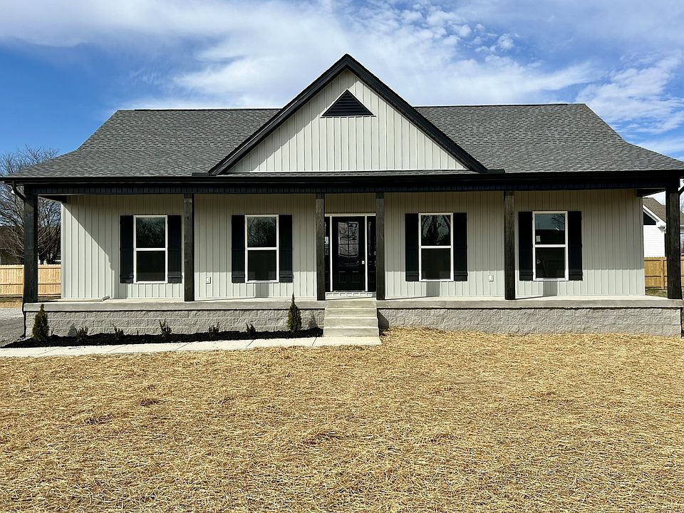 New Construction home located in the city limits on dead end road! This new home features a spacious open floor plan, 9ft ceilings, white shaker cabinets, corner pantry, and a double bowl vanity in the master bath with a large walk in closet. Exterior features include an oversized covered rocking chair front porch and a patio out back. Make this your new home today!