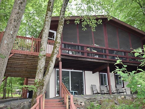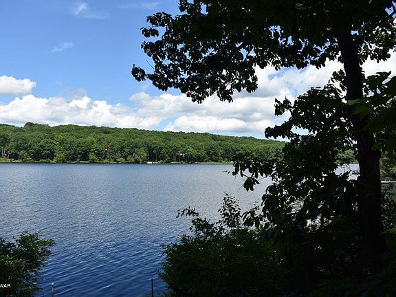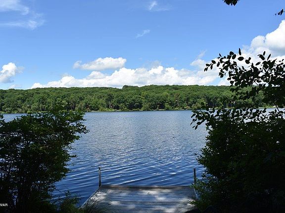 Imagine, waking up and seeing the lake. Imagine, soaking in your Jacuzzi tub and seeing the lake. Imagine, seeing the lake from just about every room in this 3 bedroom, 2 bath lakefront property. Stop imagining and make it happen with the purchase of this uniquely designed property. Walk out, walk down the steps and relax on the included dock or paddle away in the included boat. All of this and more in the prestigious gated community of Hemlock Farms.