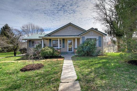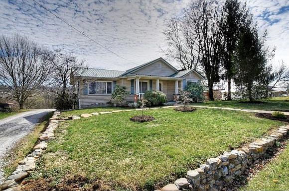 Move-in ready! CHARMING FARM HOUSE on 3.74 acres with FANTASTIC VIEWS of the mountains. This great home has 3 bedrooms, 1 full bath, large living room with fireplace, dining room, SPACIOUS AND UPDATED KITCHEN, and partial basement with semi-finished room which could be used as an office/den, bedroom or storage. Great outdoor loving space: covered front porch, wrap-around back deck, nice backyard, garden area, orchard and pasture land. Other highlights are: Hardwood flooring, newer metal roof, new heat pump in 2017, all kitchen appliances stay, storage shed, play set, 2-car carport, 5 stall horse barn, round pen and for peace of mind a 1-year home warranty is included. Located in an area eligible for 100% USDA financing.