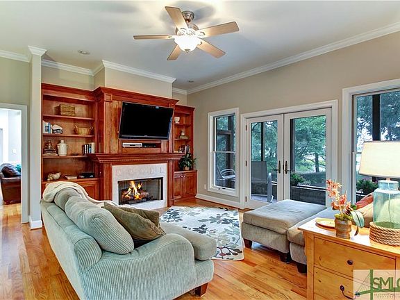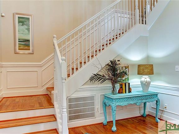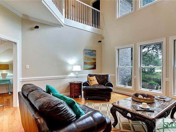 Just reduced making this an exceptional waterfront buy; make offer on this incredible property with stunning views of coastal marshes! Wonderful opportunity to own this one-owner executive home in private gated community with deep water dock on infamous Moon River - 30' boat slip included! Open and airy feel with custom moldings and hardwood floors; volume ceilings include 2 story LR and 2 story entrance foyer with pretty exposed staircase; 2 master suites; upstairs MBR has private balcony with inviting views of river, oaks, & palms; 4 bedrooms plus home office or 5 bedrooms; modern kitchen with Butler's Pantry / Bar; back stairs from garage to bonus; relax on screened porch & enjoy the cool breezes while entertaining your family & friends; tons of storage throughout; enjoy dinner on the community dock & pavilion after your boat ride! Very convenient location close to shopping & Truman Parkway & just off Ferguson Avenue