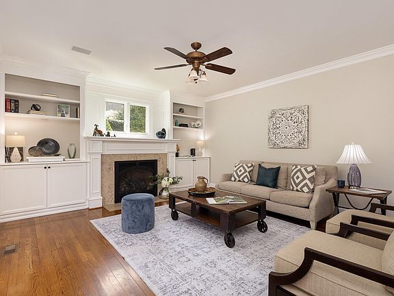 Beautiful home in The Oaks, one of the area's most prestigious neighborhoods. Just a short walk to the CH Country Club with swimming pool, tennis, & golf course, the home sits on a corner lot with landscaping sided by hardwood trees. The primary bedroom has cathedral ceilings & a truly exquisite custom bathroom. It feels like a luxury spa w/ skylights + honed limestone floors, includes 2 quartz top vanities, 2 amazing (his / hers) closets with custom closet systems and 2 glass doored cabinets giving everyone space, privacy & comfort. Kitchen has a Jenn-Aire range, new dishwasher, granite counters and glass doored cabinets. The breakfast area has built in banquette & bay window and the family room is warm and friendly with built-in cabinetry and gas fireplace. The idyllic screened-in porch has vaulted ceilings & skylights and a patio area designed for outdoor entertainment. Both 2nd floor bathrooms have travertine tile and quartz countertops. Lots of space for a private office in the extra bedrooms. The 3rd floor offers a great space as a large family fun room or super project room for workouts, art or hobbies; and a full bathroom. Hardwood floors throughout main level. Newly installed furnace (2025) with warranty. Garage updated (2024) with storage cabinets on two walls, clean epoxy type floor. Updated fiber cement exterior siding (2019), sealed crawl space (2016). Custom back patio w/ pavers. Easy to maintain manicured yard with irrigation system & landscape lighting.