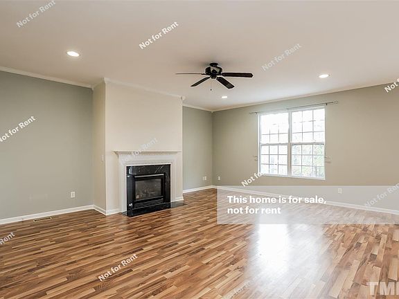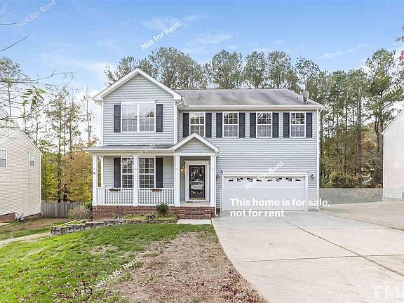 This Garner two-story home offers a fireplace, dual showers plus bath, and a walk-in closet in the master bedroom, a loft, a deck, and a two-car garage.
