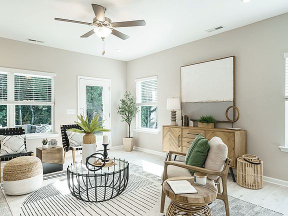 The Telfair makes efficient use of space for the whole family.. The foyer welcomes you with a study featuring a sophisticated double door entrance. Enter into the open-concept living space with kitchen island including beautiful light granite countertops, breakfast area, and spacious family room. Other features in the kitchen include gas stainless steel appliances, tile backsplash, and crisp Sarsaparilla color cabinets with crown molding. Exit the family room onto your covered patio with an uncovered extension! The owner's suite lives to the rear of the home, off of the family room and features a generous walk-in closet, owners bath with large walk in shower, and separate water closet. Bedrooms two and three share a full bath.