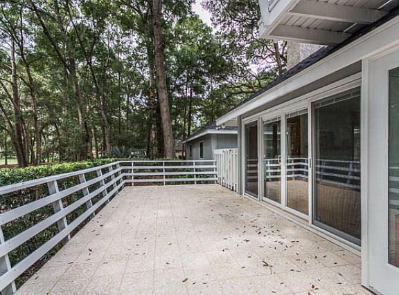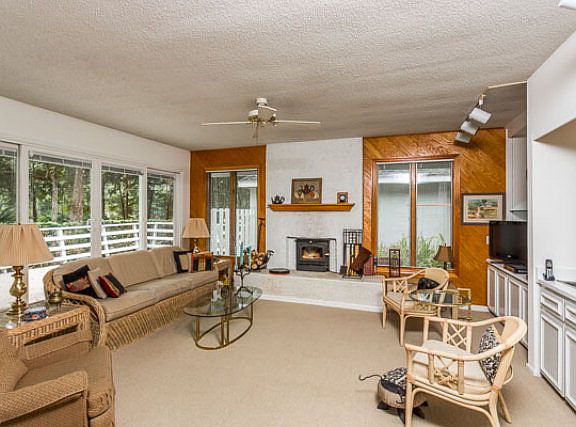 Lovely home surrounded by trees in a serene setting on a corner lot with large, heated pool. Large front patio stretching the entire length of the house. Beautifully constructed home with large windows to let in natural light. Dining and kitchen areas looks out onto backyard and courtyard pool. Kitchen is spacious with granite countertops. Screened porch right in front of the large outdoor pool has plenty of room for entertaining. Great floorplan with two bedrooms and baths on the main level. Shower and large tub in master bath. Upper deck has golf course views. Large living area with fireplace completes this cozy & relaxing abode.