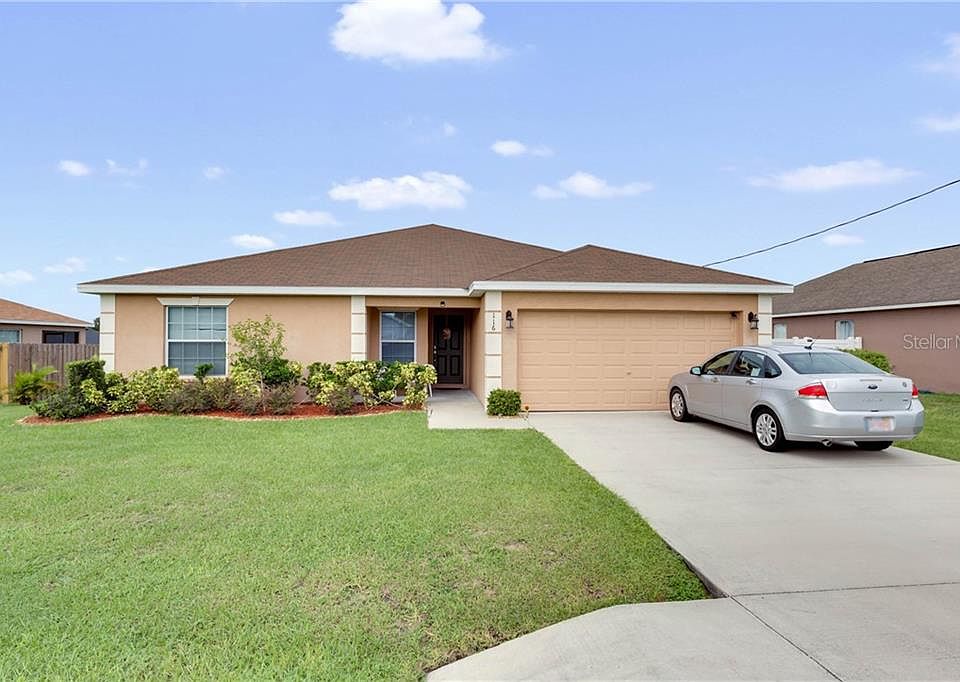 Lovely 4 Bedroom/ 2 Bath Home located in the Picturesque Community of Lake Mcleod Pointe. The Open Concept Floor Plan offers a Spacious Great Room enhanced with Vaulted Ceilings and Glass Sliding Doors. The Eat in Kitchen features a Large Breakfast Bar with Granite Counter Tops, Closet Pantry, Cherry Wood Cabinetry and Stainless-Steel Appliance Package. The Master Bedroom Suite offers Wall to Wall Carpeting and Two Walk in Closets. The Master Bathroom features a Luxurious Garden Tub, Dual Sinks and a Tiled Shower. This desirable Split Bedroom Floor Plan offers 3 Guest Bedrooms and Loads of Closet Storage Space. Other amenities include a Large Lanai overlooking the Private Backyard, Indoor Laundry Room, Irrigation System, In Wall Pest Control System, Exterior Carriage Lights, Covered Front Entrance and a 2 Car Garage with Vinyl Flooring. This Wonderful Property is sited on an Oversized Lot surrounded by Fruit Trees. Great convenient location within a close proximity to Schools, Shopping, Restaurants and LEGOLAND.