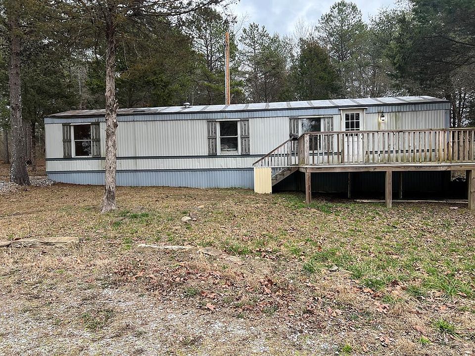 Calling all investors... are you ready for your next money-maker flip! This partially renovated property already has new plumbing, wiring, and sub floors. There's also updated water and power installed and a state-of-the art dual 1,000 gallon pump septic tank system. Most of the home finishing elements are included: flooring, bath fixtures, paint, light fixtures, bath fixtures, and more. It was the seller's plan to have blue-flame wall mount heaters and window A/C so there's no HVAC equipment. It's ready for the new owner to complete renovation. Situated on a double lot, including a corner lot with a tranquil pond, this property will appeal to multiple owners - first-time buyers, empty-nesters, active family or homesteaders. Enjoy the spacious open floor plan with a split layout, perfect for comfortable living and entertaining. Step outside onto the huge deck overlooking 1.82 acres of sprawling land, dotted with evergreen & deciduous trees.