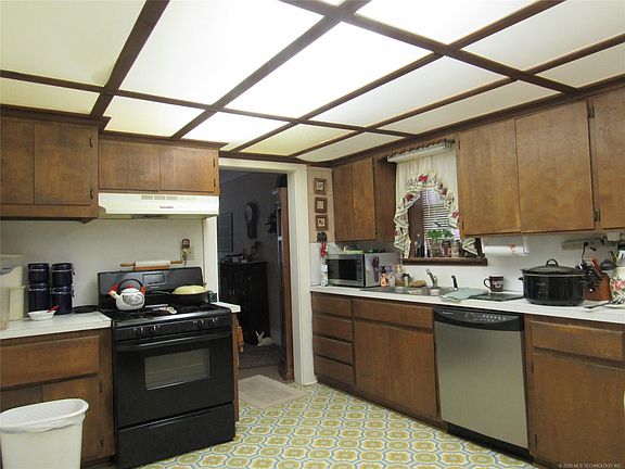 Huge kitchen in this home w/lots of counter space, big windows in living area w/wood burning fireplace, full brick home, large master & master bath w/whirlpool tub, owner thinks master bath suite is not included in sq. footage, covered patio & extra large storm cellar, storage building in back yard that is totally fenced. Cul de sac location just two blocks from city hall/police, schools, & community center. All appliances included, this home is within 2 mi of Keystone Lake marina, new roof being install