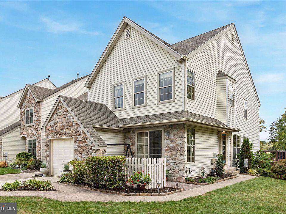 Welcome HOME! A charming end unit townhome, perfectly nestled at the end of a quiet cul-de-sac in the highly sought-after community of Glennbrook and the Award Winning Central Bucks School District! Boasting added privacy and an abundance of natural light, this home offers the best of both convenience and tranquility. The prime end unit location provides extra windows, filling each room with sunlight and framing scenic views of lush landscaping and mature trees. Step inside to discover an open and spacious floor plan, ideal for both relaxation and entertaining. The family room with vaulted ceiling flows seamlessly into an updated kitchen, complete with tile flooring and custom tile backsplash, stainless steel appliances with new dishwasher, built-in pantry, ample upgraded granite counter space, and recessed lighting. A private oversized deck with awning extends your living space outdoors, where you can unwind and enjoy favorite meals off the grill or serene mornings with coffee. An updated hall bath with porcelain tile floor and large laundry room with garage access complete the main floor. Upstairs, the generously sized bedrooms offer tranquil retreats, with the primary suite featuring a sitting room, plantation shutters, ceiling fan, private en suite bathroom and generous walk-in closet. The additional bedrooms are perfect for family, guests, or a home office. Downstairs, the lower level offers a fully finished walk out basement complete with a beautifully crafted stone gas fireplace and sliding glass doors to a quaint patio. Ample storage, attached garage, new roof and conveniences such-as well-maintained grounds, trash removal and nearby amenities make this home move-in ready. Quickly accessible to local parks, major highways, shopping and dining all while providing a peaceful, private setting. Don't miss your chance to own this charming end unit, where convenience meets serenity!