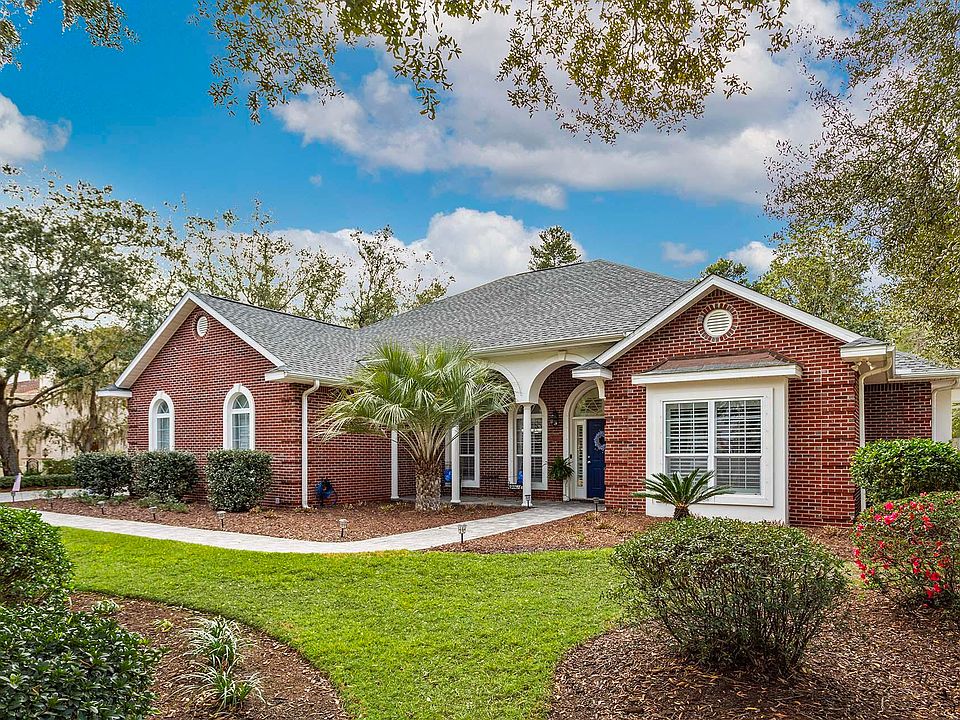 Significant price improvement--motivated seller invites all reasonable offers. 116 Grand Flora Way is nestled in the exclusive, gated, waterfront community of Botany Bayou. This beautiful home offers a spacious, one-level, split floor plan with 3 bedrooms, 2 1/2 baths. The heart of the home is the open-concept living, dining, and kitchen area, perfect for entertaining. The kitchen is equipped with double ovens, granite countertops, custom cabinetry, and a supplemental water tank for instant hot water. Throughout the home, durable LVP flooring adds style and functionality, while the living room is highlighted by a remote-controlled gas fireplace, creating a warm and inviting atmosphere. The primary suite is a true retreat, with coffered ceilings, a large walk-in closet, and an en-suite bath featuring a soaking tub, walk-in shower, and granite countertop. The second and third bedrooms share a convenient Jack and Jill bath, ideal for family or guests. Additional living spaces include a sunroom, a well-appointed office with built-in cabinetry, and a spacious laundry room with ample storage and a utility sink.