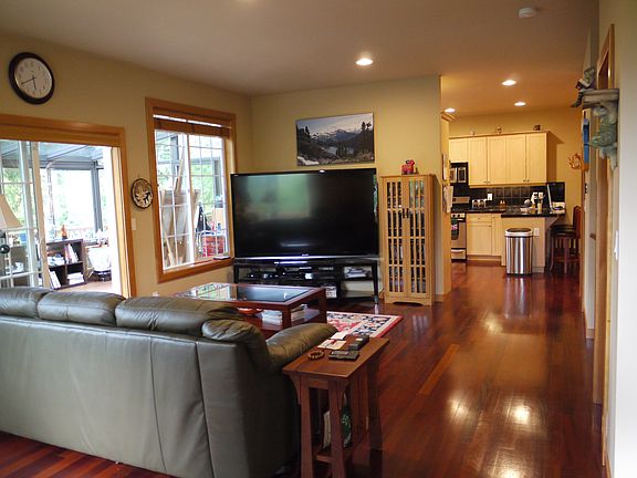 Perched on a hill and nestled in the trees, this home offers privacy and scenery. With Brazilian Cherry, tile, slate & solid wood doors, this home has that northwest feel & all the amenities Sudden Valley has to offer. The low maintenance exterior, includes plank siding and Trex style decking. The owners have added a large solarium, so you can enjoy being outdoors year round, but with the protection of windows and heat for those colder days. There is a wetbar off the downstairs family room.