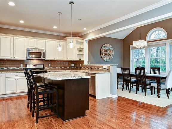 This original Heartland Home was built with high end, on trend detailing shining through out the entire home. First floor features to notice; granite, hardwood, extra windows, extra trim throughout, island kitchen w/glass subway tile backsplash, cream cabinetry, SS appliances, ample counter space, w/a morning room boasting a cathedral ceiling & striking chandelier centerpiece. Romantic Master Suite w/tiled, glass framed shower & separate soaking tub. The LL is a showcase! Custom built-in media wall w/surround sound, statement piece bar w/concrete top & under-counter lighting, espresso cabinetry, & wine cooler. Full bath w/CT walk-in glass shower, 2 storage areas , & egress windows that fill the space w/natural light complete this remarkable LL. Finish out the home w/ exterior details that set this home apart including dentil molding, window sconces, a man door from garage & full sidewalk around the home to the private rear yard, w/glass paneled Trex decking for a quiet place to gather.