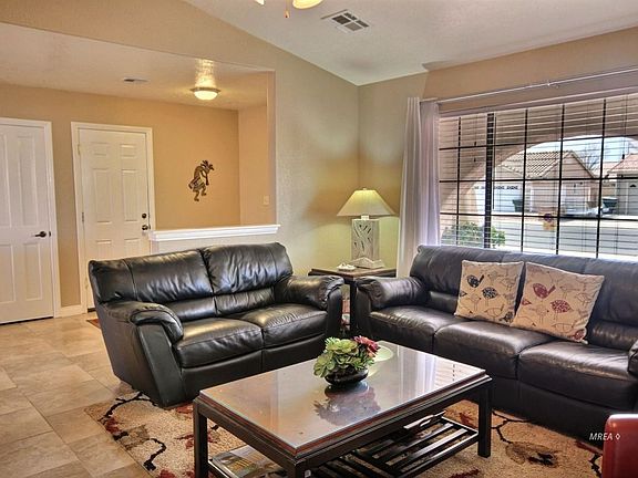 This IMMACULATE home is located in Jack Hardy, a desirable community south of I-15. The home site is incredibly private, conveniently located and a RARE find in a non-HOA community. The home is situated on a spacious lot and has a view of the eastern mountains. The home has been attractively remodeled and updated and no expense was spared. The floor plan is open and lined with windows. The kitchen has white cabinets and exquisite granite counter tops. The appliances are stainless steel and the back splash adds character. The home has vaulted ceilings, warm paint tones, tile floors and upgraded carpet and base boards. The master bedroom has French doors to the patio and the bathroom has a 36" vanity with granite. All the hardware and plumbing fixtures are brushed nickel. The yard is meticulously landscaped and surrounded by a block wall. The tiled covered patio is large and ideal for outdoor entertaining. Decorative pavers line the patio and the synthetic turf. The garage has storage cabinets and an Epoxy finish. Both sides of the home provide extra room for recreational vehicles or trailers. Other features include ceiling fans, window coverings, refrigerator and a water softener.
