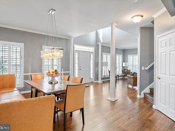 Beautiful 4 bedroom, 3.5 bathroom colonial in Fieldstone! A welcoming front porch with amazing views of the mountains greets you as you step into the open floor plan home. The first floor recent updates include hardwood flooring and plantation shutters. The formal living room provides plenty of room for seating, along with the recently added recessed lighting. Across from the living room is the dining room with a beautiful light fixture, crown and chair molding, and generously sized for entertaining. The beautifully renovated kitchen boasts custom cabinets and granite countertops, stainless steel appliances, an island, and breakfast bar overlooking the breakfast room offering a cathedral ceiling and plenty of light to fill the room. The family room features a wood burning fireplace. Stepping outside the breakfast room onto the Trex deck with areas for relaxing, grilling, and enjoying time outside. The primary bedroom offers plenty of space for a sitting area, an en suite with walk in closet, and fully renovated bathroom. Three generously sized spare bedrooms, all with ceiling fans; a laundry room; and second bathroom completes the upstairs. The fully finished basement has two rooms left for storage, a potential 5th bedroom/den with a full bathroom, and large rec room. Exterior features include a 3 car garage, new roof (2021), and new gutters with gutter guards (2022).