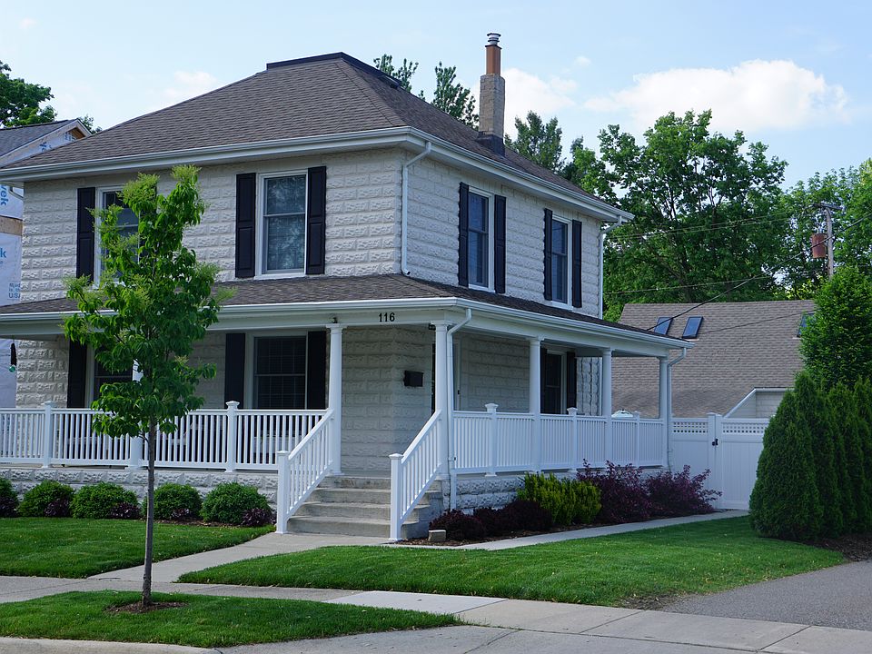 Single family colonial American Foursquare (1769 sq ft). Two blocks from the park, and a short walk to restaurants, shops and grocery stores. Charm abounds in this single family home from the wrap-around front porch to the interior featuring dark hardwood floors, gas fireplace, butler's pantry, built-ins (bookcase, linen closet, drawers), and extensive moldings. All bedrooms feature walk-in closets with additional built-in custom closet in the master featuring floor to ceiling shoe racks. Large double hung (Andersen) windows allow for lots of natural light and airflow. Includes an oversize 2-car garage with storage loft perfect to be converted to a home office, workout facility or other bonus space. Fully fenced back-yard with large (27' x 15') brick paver patio, and professional landscaping.