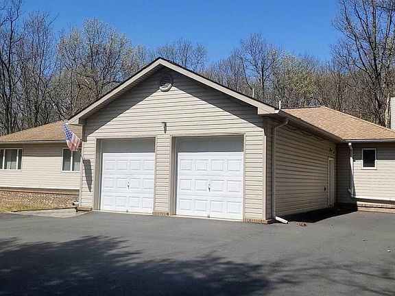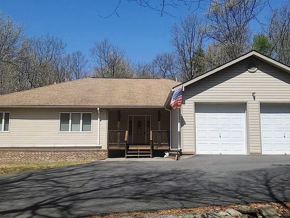SPRAWLING & SPACOIUS! This beauty is located just minutes to Lake Wallenpaupack and a short drive to the interstate! Open concept, high vaulted ceilings, lots of light, and situated on over an acre! A GORGEOUS primary bedroom with not one but TWO walk in closets, a HUGE bathroom and easy access to your covered back deck. Two other bedrooms across the hall with a Jack & Jill Bathroom between. Kitchen features black granite counter tops, a generous sized pantry and a separate laundry area. If you need more space, check out the HUGE unfinished basement which could be completed for additional living area! Nice semi level yard with an attached 2 car garage and recently paved driveway completes this home!, Beds Description: Primary1st, Baths: 1/2 Bath Lev 1, Baths: 2 Bath Lev 1, Baths: Modern, Eating Area: Modern KT, Beds Description: 2+Bed1st