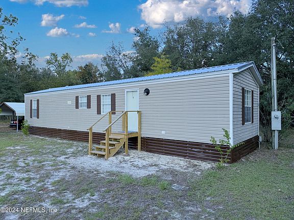 TURN KEY! Recently renovated home on double lot that is high and dry, not far off paved street for easy access. Easy commute to Gainesville or Palatka and less than an hour from the beach! If you are not a beach person there are plenty of area lakes and the St. John's River nearby for recreation. A few minutes outside the city limits of Interlachen with small town charm that is growing. If you want a home that is move in ready and you won't have to spend precious time doing repairs this one is perfect! Freshly painted inside, with new metal roof, new flooring, new water heater, new light fixtures, new plumbing fixtures, new gas stove, new steps and lots of new trim. Home has factory upgrades including double paned windows and air vents in ceilings. Enjoy your morning coffee or an afternoon drink on the 130 Sq ft enclosed porch. Extras include double carport and large shed with electric.
