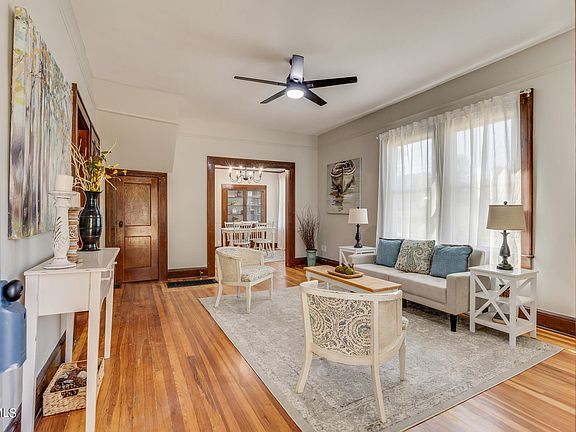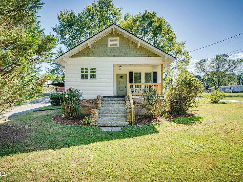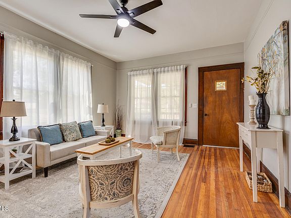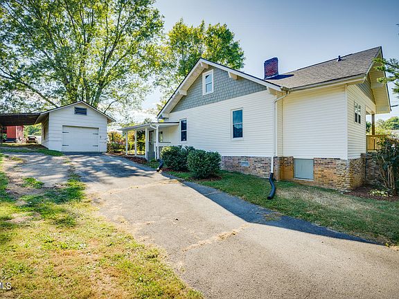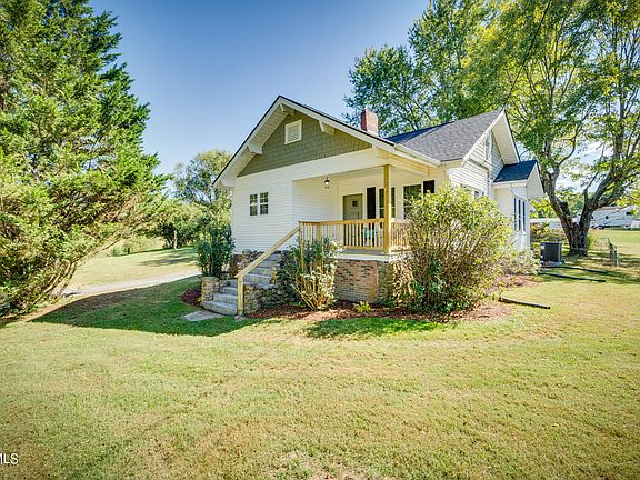Fully renovated farmhouse in Elizabethton! This 3 bedroom / 2 bathroom home features a primary suite on the main level, hardwood flooring, and an abundance of charm! From the covered front porch you'll enter the living room with its high ceilings and built-in cabinets. From there you can access the dining room and the kitchen, which has tiled backsplash, butcher block countertops, and stainless steel appliances. Exiting the kitchen from the back door will take you to the fenced and landscaped yard perfect for enjoying tranquil outdoor time. The primary bedroom features an original fireplace and an ensuite bathroom with new flooring, shower, vanity and fixtures. Also on this floor is a 2nd bedroom, 2nd full bathroom, and a mud/laundry room. Upstairs are 2 additional rooms. One is a bedroom and the other a flex room that could serve as an office, den or playroom. The home sits on a roughly half-acre corner lot with a 1-car detached garage that even has bonus storage space in the loft above it. If that's not enough, there is a new roof, heat pump, water heater, and windows! This home is a must-see. You will fall in love with it!