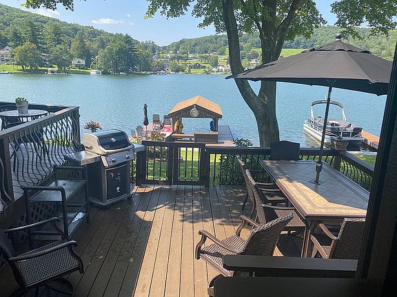 This is a lakefront property on Lake Winola. It has a large lakefront, 3 decks. The first floor has tile in the kitchen and bathrooms. The rest of the flooring is hardwood. The house was insulated with foam insulation and is a year round home. There is central air conditioning. There are 2 docks; a slip for the pontoon and the traditional boat house. The views are beautiful! The wood fireplace has been converted to gas and heats the entire home.