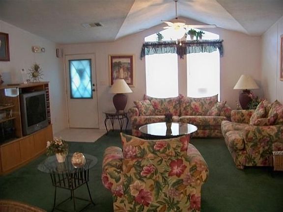 An oversized 4br/2ba, split plan home that is fully furnished and 100% turnkey. This home has it all! It is a 2001, Skyline home with 1664sf of living space plus a spacious vinyl enclosed FLR. There is a welcoming LR with a peak ceiling and a formal DR. The EIK has a dining bar, pantry and glass deco cabinets and is any cooks dream kitchen. All of the BR's invite you into relaxation and have plenty of storage space. The MBA is a glam bath with a walk in shower, his/her sinks and vanities, a garden tub and additional linen storage space. There is also a shed for added storage space and a side by side double carport. The home overlooks a large, tropically landscaped corner lot complete with palm trees. This home will easily sleep 10 and when we say all you need to bring is your clothes and a toothbrush, we mean it! There is TV's, dvd player, radio, books, movies, puzzles and even some toys for the younger kids! So if you are looking for an enchanting vacation home this is the one for you! An enchanting all age and pet friendly Community! This is a prominent Community in the Davenport area because of its great versatility! It is popular with investors and those on vacation because of its great location just 10 minutes from the Disney area, on Highway 27 and the convenience of an on-site Property Management company. The potential rental income to you can easily help pay for the home and even your next vacation. The Property Management Company will handle everything for you from securing renters to making sure that your property is properly maintained. You dont have to worry about a thing! In addition to being a great place to vacation, several residents choose to call this Community home year round. The Community is thriving with plenty to do for everyone from the kids to the grandparents. The Community has a clubhouse, a heated pool, kiddie pool, playground, tennis, billiards and RV/boat storage. This Community has well maintained and oversized lots. It is encompassed by shopping, a variety of restaurants, Polk Countys 550 lakes, numerous golf courses and medical facilities. You are also within an hour of a major airport and Floridas famous white sand beaches. Sports fans you are surrounded by a variety of sports from collegiate to professional including the Spring Training home of the Atlanta Braves. Also within 30 minutes of this community are Historic Bok Tower and Legoland. Whether you are just here for a visit or settling down permanently you are sure to feel welcomed here. Davenport is located in Polk County, and has a population of around 5,000. So stop throwing your money away on hotel rooms year after year and own your very own castle in this magic kingdom. All potential residents must be approved for residency prior to purchasing a home. The Thompson Team will be happy to assist you with the approval process. When looking for your new dream home, remember the advantages of a resale home such as this in a leased land Community. You benefit greatly by purchasing in a leased land Community as you do not pay property taxes! Included with all homes that we sell at full asking price is a 1 year home warranty which covers all electrical, plumbing, appliances and more. Financing is also available through local Lenders with as little as 25% down. One of our Sales Consultants will be honored to show you this fine home on leased land and any other manufactured homes on leased land which may be of interest to you! Call The Thompson Team at (863)325-8217 or email us at TheThompsonTeam@PamThompsonTeam.com or PamThompsonTeam@aol.com for more details or to schedule a showing appointment. Please be sure to visit and tour our showcase of manufactured homes on our web site at www.PamThompsonTeam.com and www.CentralFloridaManufacturedHomeSales.com.