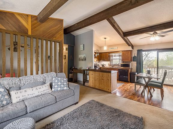 Upon entry, you'll adore the vaulted ceilings in the living room, kitchen, and dining area, accented by beautiful wood beams that bring a touch of farmhouse architectural style to the main living space.