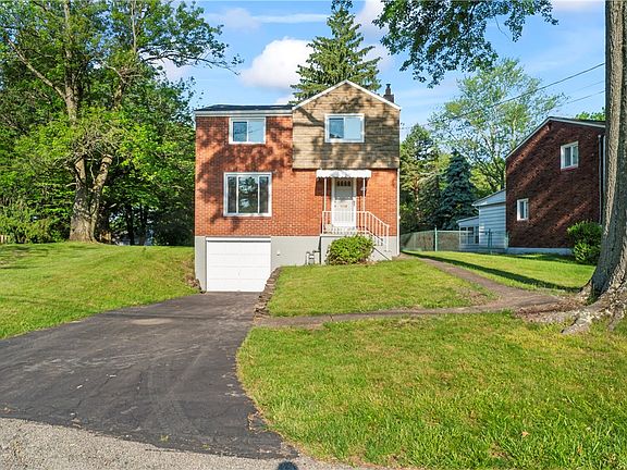 features refinished hardwood floors, a spacious living room, stained baseboards and doors, and a unique staircase placement. The main level includes a dining room, kitchen with a rear entrance to a flat backyard, while the second level has three bedrooms and a bathroom. The lower level has a utility area, one-car garage, and driveway parking. Recent updates include: gas line, roof, new windows, water heater, laundry sink, electrical entrance/panel, refinished hardwood flooring, NEW sewer liner, Radon Mitigation System. The property is surrounded by oak trees maintained by the borough and is close to Forest Hills Park, pool, tennis courts, playground, and dog area. Conveniently located near the business district and Parkway East for easy access to downtown or Monroeville.