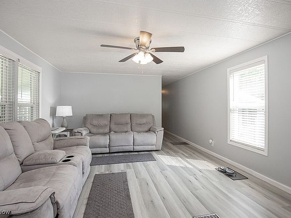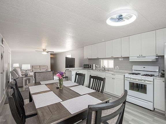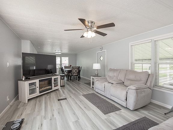 Welcome to carefree living in Twin Lakes, Lorain County’s premier 55+ gated community! This beautifully updated and fully furnished 2-bedroom, 1-bath home is completely move-in ready and packed with upgrades inside and out—perfect for anyone looking for comfort, convenience, and style at an unbeatable price! Step inside to find brand new drywall, modern light fixtures, durable new vinyl flooring, and upgraded double-pane windows throughout. The kitchen shines with new cabinets, countertops, backsplash, and updated appliances. The bathroom features a new double vanity, toilet, and walk-in shower—all tastefully updated. The spacious primary bedroom offers a large closet, and you’ll love relaxing in the enclosed patio with fresh screens or storing extras in your attached shed. There's also a carport for covered parking and a new metal roof (2019) that’s been professionally washed along with the siding every year. A new furnace blower was installed in January 2025, giving you peace of mind. Bonus: this home comes fully furnished with clean, modern furniture—just bring your suitcase!! All this for only $29,900, with a $950/month lot fee that covers access to the community's gorgeous ponds, pickleball courts, updated fitness center, recreational clubhouse, and more!