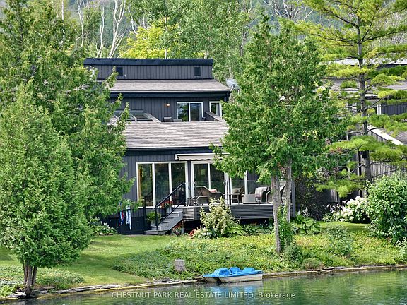 Nestled on 5 serene acres, Hidden Lake offers a tranquil and friendly community centred around a stunning private 1-acre lake. Beyond the swimmable, trout filled lake, enjoy resort style amenities shared with fellow homeowners: a sun-drenched outdoor pool, tennis/pickleball court, trampoline for the kids, fire pit, and a sprawling field perfect for soccer or frisbee. A private gate connects you directly to the Georgian Trail - ideal for biking, hiking, x-country skiing, with a short stroll to beautiful Georgian Bay. Home #9 is an entertainer's dream - with 4 bed/4 baths, almost 3,000 sq ft of living space plus 400 sq ft of outdoor decks. Step in through the welcoming foyer to a spectacular view of the Hidden Lake through the open concept main floor. A large kitchen with breakfast bar & dining area flows seamlessly into the living room and out to the deck, perfect for gatherings. $100k spent on newly renovated bathrooms, sleek kitchen counters, skylight, pot lights, door hardware, Envirotech roof, new furnace & central air make this home modern & comfortable. Highlights - main floor large private bedroom or office, 2 newly rebuilt & waterproofed decks off the 2nd floor bedrooms, a retractable motorized awning on the back deck & Level 2 electric car charge outlet in one of the two private driveways beside the home. Waterproofed finished basement with 3-piece washroom, guest bedroom, games & media room, laundry & storage. As a common elements condo, homeowners share costs for the grounds & amenities, making this an amazing opportunity for all-season turn-key living. Evening cocktails overlooking the pond, morning pickleball tournaments followed by cannonballs off the diving tower, biking the Georgian Trail into Blue Mountain Resort or the town of Thornbury - your resort life has never been better! Minutes to ski hills, beaches, golf courses, hiking trails, and more. Life Peaks Here!