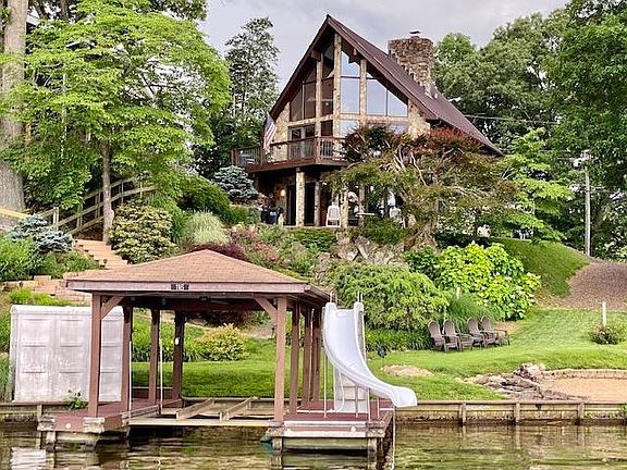 Amazing 3 Level Natural Stone & Hardiplank Chalet With Metal Roof Overlooks Beautiful Lake Louisa Located in Blue Ridge Shores Gated Community! Pristine Well Cared For Waterfront Home is Everything Your Looking For And More. Open Floor Plan Includes Living Room & Dining Room With Beautiful Random Width Pegged Hardwood Floors Overlooking A Park Like Setting With Amazing Waterfront Views. Nice Appointed Kitchen With Oak Cabinets Overlooks The Living/Dining Area That Boasts A Wood Burning Fireplace w/Heatilator and Vaulted Ceilings. Master Bedroom With Random Width Oak Flooring. Second Floor Includes a Nice Sized Loft With Sleeping Area & Full Bath. Huge Finished Basement Overlooks a Beautiful Outside Patio Includes a Family Room With Stunning Rock Wood Burning Fireplace, Wet Bar, Bunk Room, Laundry & Full Bath With Huge Tiled Shower w/ Granite Sink & Ceramic Tiled Floors. Oversized 2 Car Garage Built in 2011 Includes Finished Living Area Above. This Home Offers Everything You Need for Lake Living Including An Extra Lot With Garden Space, Covered Boat House With Water Slide and Your Own Private Beach & Fire Pit! Make This Your Lovely Dream Home Your Waterfront Happy Place!