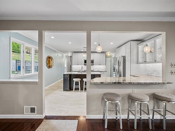 - WON'T LAST, SCHEDULE TODAY! Located on the Murrysville border in the coveted Shangri-La cul-de-sac, this perfectly maintained home is waiting for you! Main level boasts a spacious family room with a cozy gas fireplace, along with a separate living rm and dining rm that are ideal for entertaining. The gourmet kitchen features granite counters, marble backsplash, SS appliances, and elegant glass-front cabinets. A 4th br/office offers flexibility to suit your needs. Upstairs, you'll find the primary bedroom, complete with walk-in closet and an en-suite primary bath. The finished walk-out basement includes a lg game room and a pub, along with a full bath featuring a jetted tub. The private outdoor retreat features a 40'x14' patio with a covered area. A 20’x10’ heated saltwater pool provides a tranquil escape. For more storage, a custom-built 2-story shed is ideal for storing outdoor supplies. 5 mins to Murrysville shops!