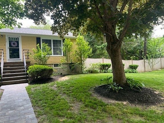Attractive, pristine and ready for the new owners! This lovely ranch style home on .66 acre corner lot offers privacy fencing and a gorgeous yard.There is central a/c too! The main level has the living room with large corner fireplace & hardwood floors. The sunny kitchen has newer appliances, large dining area and many cabinets! The master bedroom and two other bedrooms are all comfortably sized. In the lower level is a full walk-out. It offers a spacious bedroom and bath as well as a large family room (26.8 x 14.6) extra closets and sliders to the deck & patio, which has an electric awning! Also, there is a handy garden shed too. Near to shopping, schools and all major highways, this home has it all!