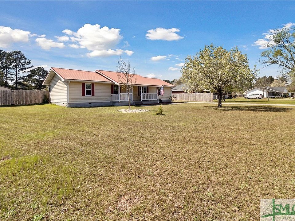 Welcome home here in the desirable South Effingham County area. Country feel in an established community. NO HOA! Spacious single family home sitting on over half (.66) of an acre with backyard fully fenced in. Front and back porch sitting is sure to happen here. Enter into a cozy foyer and notice formal dining and spacious living room, which is open to the kitchen and huge multi-purpose room that leads out to the backyard. Kitchen fully equipped with stainless steel appliances. HVAC installed in 2021. New windows installed in Dec 2019. Start the spring off right