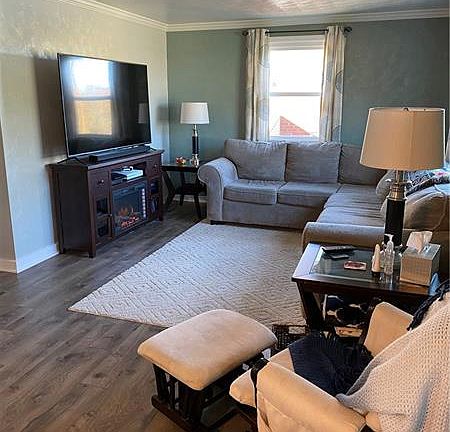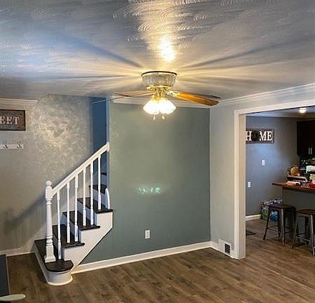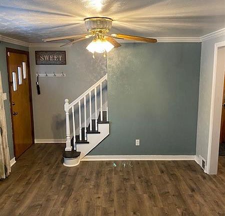 Beautiful 3 bedroom 2 bath brick home on a corner lot. Newer kitchen (5 yrs old) with all appliances, moveable island with seating and new flooring. Large living room/dining room combo with new flooring and crown molding. Master bedroom on the main floor next to updated full bath. 2 spacious bedrooms on on the 2nd floor. Finished game room with updated full bath. Extra storage in the basement with walk out to backyard and cement patio. Large fenced in backyard with a shed (as-is). Windows 4 yrs, Roof 6 yrs, H2O tank 2020 and Furnace/AC 5 yrs. Covered front and side porches. 1 car garage plus off street parking on the side of the house.