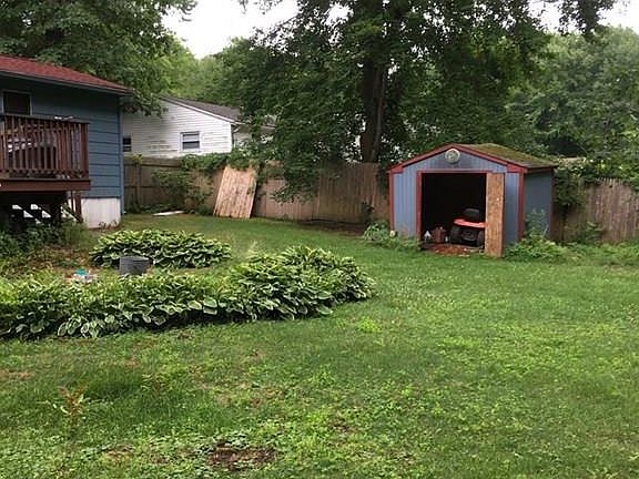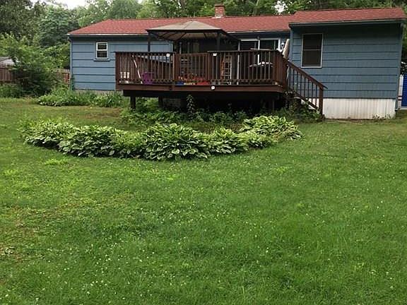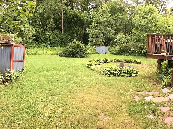 6 room 4 bedroom ranch sits on quiet dead end St. wonderful front porch to enjoy these summer days. Enter into the nice size living rm w/wood floors. Opening into the kitchen with updated appliances To remain for buyers enjoyment, and plenty of cabinets. Sliding doors off kitchen. 4 bedrooms (Or 3 and formal dining room) all with good closet space and wood floors in 3 of the bedrooms. Lovely updated bath. Full basement has one finished room and potential for much more. Washer and dryer to remain for buyers enjoyment. Back yard is very private it has a shed and gorgeous large deck. Roof approximately 7 yrs old. All this on a quiet dead end street great for kids riding bikes and playing out front.