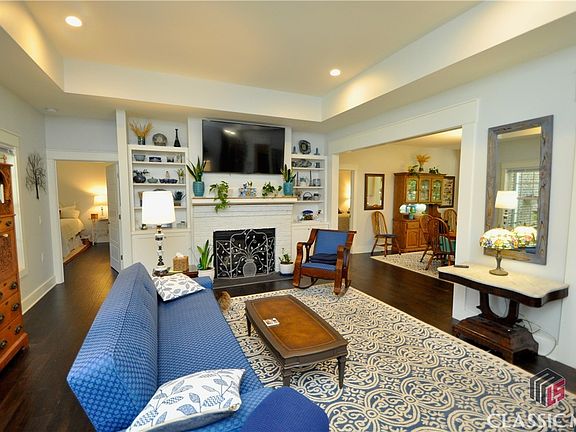 Nestled in the middle of Inverness Road is this custom built one and a half story brick abode offering over 3,000 heated square feet with a great quantity of modern conveniences and amenities to suit most styles. The entire house is complete with light colored walls, thick trim over doorways and windows, and engineered hardwood floors. The exterior has a double bay, two car garage and step less entry covered front porch. Cozy and sophisticated, the living room has a tray ceiling with recessed lighting, white brick fireplace, and built-in shelving and cabinet space. The expansive eat-in kitchen boasts modern luxuries like gleaming quartz countertops, a subway tile backsplash, stainless steel appliances, and an island with bar seating. The dining area can easily accommodate room for an 8+ person table. Off the back is a sunroom overlooking the private backyard detailed with ceiling fans where you can sit a spell and rest. Downstairs are two of the household bedrooms situated on both ends of the large, jack-and-jill master bathroom. Quite accessible, the master bathroom hosts a tremendous stepless entry tile shower with an extra wide door, dual sink vanity, and an abundance of storage drawers and cabinets. Each of the bedrooms have a ceiling fan and huge walk in closet space. The substantial laundry room is roomy and extends a sink, cabinets, and plenty of space for extra shelving. Completing the main level is another bedroom, full bath and a great space for a home office or more storage room that grants access straight into the backyard. Up the wood staircase is the fourth bedroom and another full bathroom with a tub/shower combo. The peaceful backyard provides a wonderful space to relax, garden, or entertain. The covered breezeway will lead you to an attached workshop with double doors. Located just 2.4 miles from Loop-10 access and less than 10 minutes to Atlanta Highway shopping and dining.