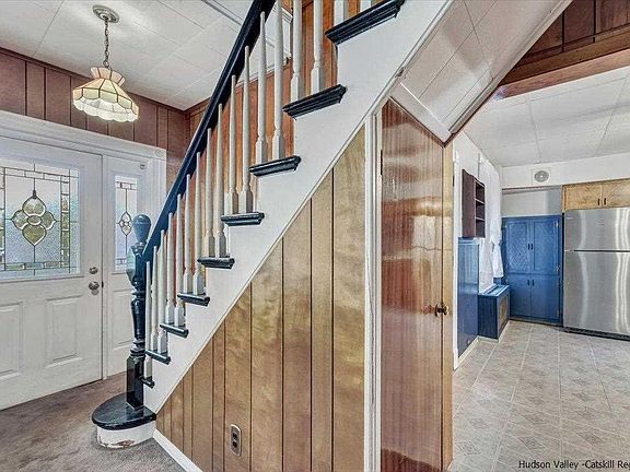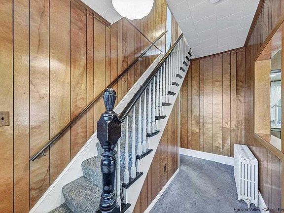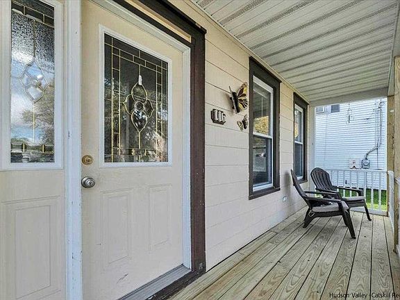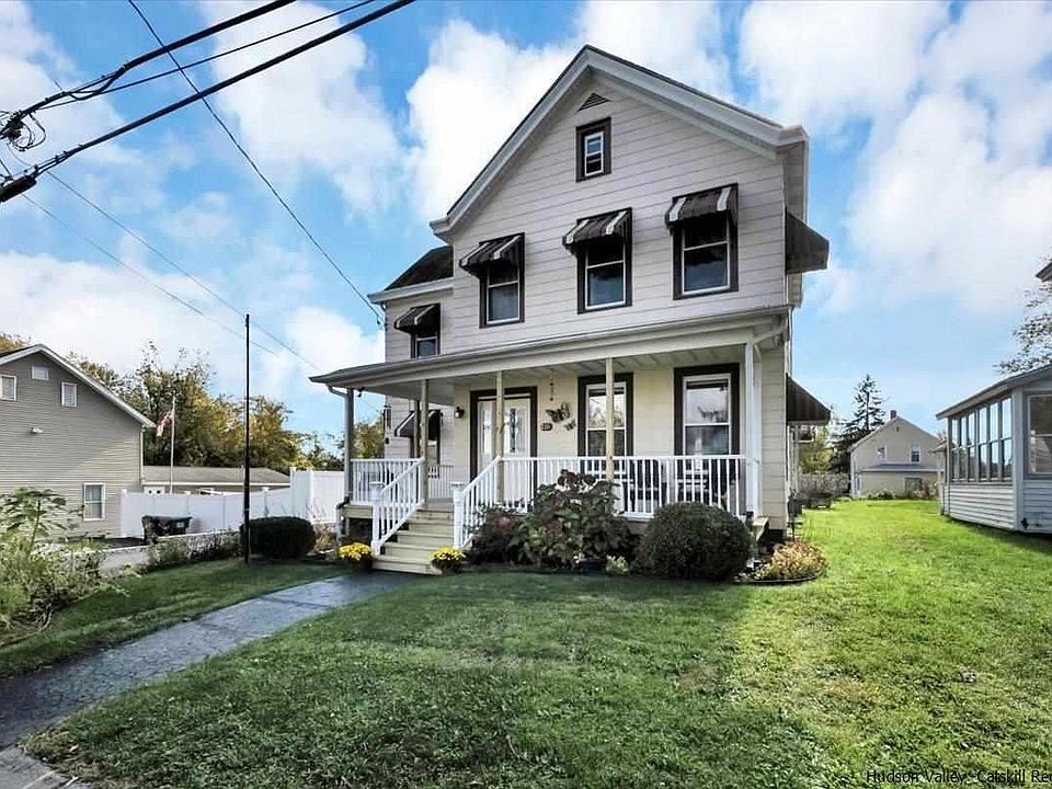Better than renting, create your own equity and pride of ownership with this 2-story home nestled in the East Kingston neighborhood. Solid 3 bdrm 1.5 bath house with many improvements has distant seasonal river views from the bedrooms upstairs. The newly built porch will give you a front row seat to chat with passing neighbors while sipping on your morning cup of coffee. Walk inside and there’s a hallway to the kitchen and to the right the living room, where the windows let the sunlight stream in. Continue through to the sizeable dining room, connecting to the kitchen with 2 spacious closets for all your storage needs. The kitchen is large enough if you’d like to add a center island and has its own exterior door to the front porch. The laundry room conveniently doubles for a mud room located between the kitchen back entrance and the back porch and houses the half bath. All 3 bedrooms and the full bath are upstairs. There’s a 2 car garage with a side workshop area. The lot is long and also fronts on Addis St. All this and you’re just around the corner from the new Sojourner Truth Park & Hudson River Brickyard Trail at East Kingston’s Trailhead – a great place to get all your outdoor adventures started.