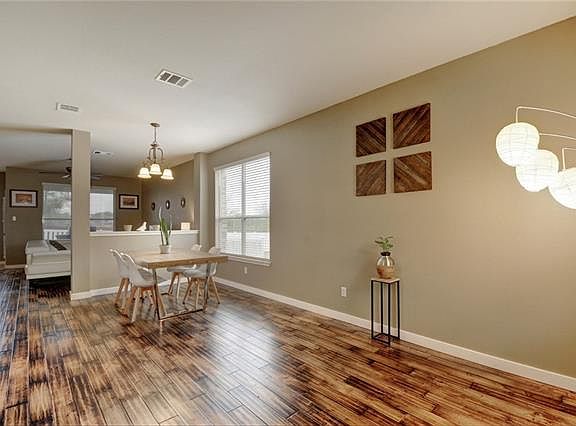 Wonderful opportunity situated on a cul-de-sac, across from a large playfield~This 3 bedroom 2.5 bath home features multiple living & dining areas for hosting family gatherings or relaxed entertaining~Laundry room is conveniently located upstairs with master & secondary bedrooms~No carpet~Nest thermostat~Enjoy a covered patio overlooking a sizable, fenced in yard with custom stone fire pit to utilize during winter months~Close proximity to hiking trails, shopping & major roads: 130 / 45 & I-35~Must see!