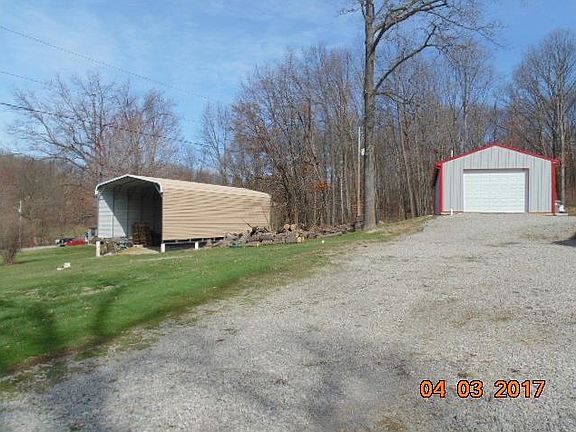 Country living at it's best! All brick home with Amish made kitchen cabinets, large pantry, and wood trim throughout. Natural light streams through the beautiful bay window in the large open living room as well as the open dining area. The basement includes two additional rooms as well as a newly tiled full bath. Walk outside to 5 acres with fruit trees, raised beds, and a pole building that would be the envy of all! The newer pole building boasts heat and air, insulated office, half bath, and air compressor with air-matic system running throughout. Plenty of room for any extra vehicles or toys you might own! Dead end road makes this a low traffic area in a quiet country setting.