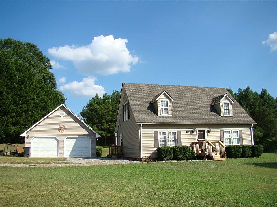 Crestview Park area, 1.5 AC, 1620 SQFT, 3/2.5 with MOM. Detached 2 car garage in Rutherfordton, outside city limits. Great tax savings! This comfortable vinyl sided Cape Cod is easy on the eyes and easy on the pocketbook. It's an off-frame modular that was factory built and has been well cared for. Upgrades include new tile, new laminate and beautiful new granite countertops. With a large covered back deck, you'll find this home is enjoyable inside and out. There's a storage building out back that will stay, and you'll find there's space over the garage for open storage, too. If you've been looking for an affordable house NEAR town, near the park, near the hospital and near the golf course, but don't want to be IN town this may be it. It's as sweet inside as it is outside, with a semi-open floor plan, beautiful eat in kitchen with a pantry, plenty of cabinets and a working island. In the living room you'll enjoy the gas log fire place and the ceiling fan. All of the bedrooms have ceiling fans, too and walk-in closets, there's even a separate laundry. This house has everything you'd expect to find in a much larger home on a smaller scale and for a smaller price. Come see it.